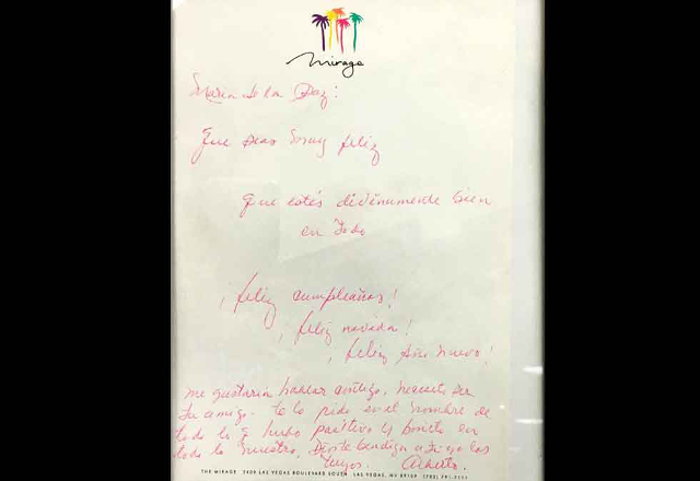 La relación de Juan Gabriel con su manager María de la Paz Alcaraz fue en sus inicios la que tendría cualquier persona con su mejor amiga. La quería tanto que hasta una canción le compuso, «María de la Paz» , la cual se encuentra en su álbum «Con tu amor» de 1981. Ella fue su mánager por veinte años y generalmente estaba siempre detrás de las negociaciones con los jefes de las asociaciones ganaderas para que Juan Gabriel participara en los palenques. Abruptamente rompieron su relación en 1988. Hay rumores de que esto se debió a que ella terminó desviando dinero para sí misma y Juan Gabriel lo detectó. A pesar de esto, ella siempre quedó en su recuerdo, dos sucesos lo confirman: el primero en Las Vegas antes de presentarse en el Mirage para el grito de independencia el 15 de septiembre de 1990. Ese día le escribió una carta de cumpleaños a María de la Paz, para luego de terminarla arrepentirse y tirarla a la basura. Dicha carta fue rescatada en ese momento por el hijo de uno de los ganaderos que lo estaba presentando en Vegas y ésta es su imagen: