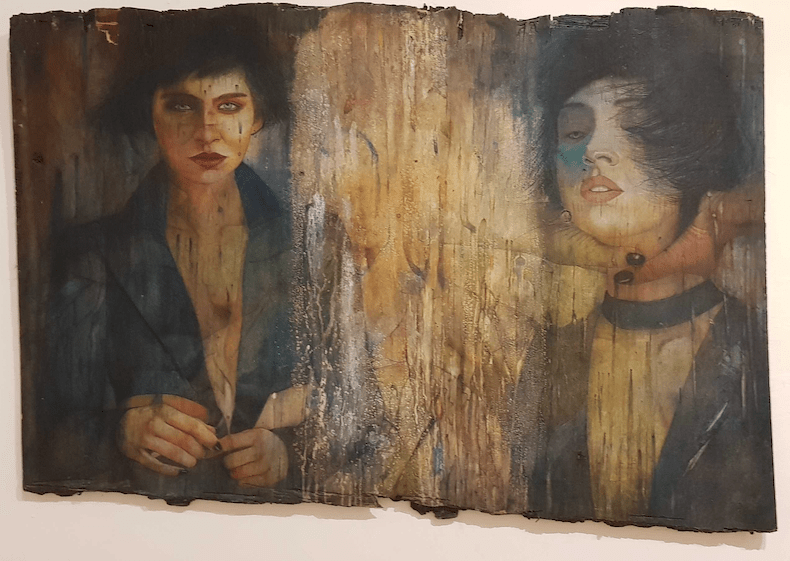 El mes pasado visité por primera vez la ciudad de Durango y al llegar al Museo Palacio de los Gurza, el cual funge como el museo de arte contemporáneo duranguense, me sorprendió ver una exposición con la obra de un artista local, Rogelio Rodrigo Angel. Sus cuadros son hechos sobre tablas de triplay viejo que usan transportistas en las cajas de sus pick-ups y que van a reemplazar por nuevas. Su temática es constante: la fisonomía femenina en un ambiente etéreo, quizás onírico. Rogelio no se dedicó al arte de inmediato en su vida, tuvo que pasar por cierto viaje personal. Ha declarado que «la pintura es el reflejo de su vida», supongo que de ahí otra de sus declaraciones: “Interiorizar conmigo mismo me cuesta mucho trabajo, al pintar me doy cuenta de la persona que soy y lo que estoy viviendo o viví. Creo que no he descubierto a Rogelio, me falta interiorizar, pero dentro de poco me encontraré con él”. Rogelio comenzó su pasión por la plástica desde chiquito y en cuanto a su arte, él reconoce que «la pintura es quien te va llevando, la intuición es la que hace que te dejes llevar. No te resistas.» Leyendo su trayectoria y punto de vista, desprendo que el caos se teje a mano y que es el caos interior mismo el que conduce a algunos a expresarse creativamente y sin alternativa. En el museo me informaron que el día de la inauguración casi la mitad de su obra fue vendida pero que pudieron haberse colocado más, sólo que él no es mucho de vender sus creaciones. De cualquier manera, me dio mucho gusto descubrir a Rogelio en Durango y constatar una vez más que el arte es como la naturaleza: brota por todos lados.