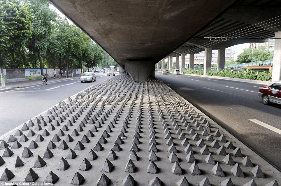 Este proceso se ha convertido en un problema moderno para los ayuntamientos de muchas ciudades de América y Europa, en muchas instancias, generalizado y sin solución socialmente digna. Dueños y arrendatarios de locales comerciales comenzaron a exasperarse al llegar por las mañanas a abrir sus negocios y encontrarse en puertas y banquetas con residuos de comida, basura e incluso heces fecales de perros y humanos. En 2015, en Londres, se registra una de las primeras apariciones de medidas en contra de este inconveniente. Instalaron en tiendas y edificios de apartamentos picos de metal alrededor de sus fachadas y entradas. Eran algo así: