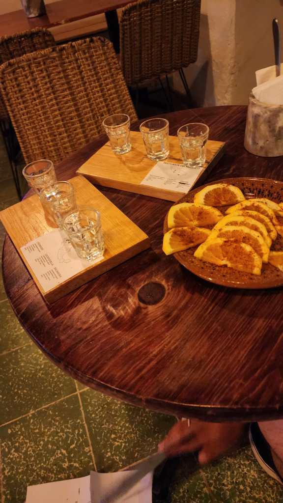 En dos lugares yo me divertí muchísimo, el acuario y el observatorio. En ambos hay interacción con animales, algo que siempre disfruto. El observatorio es una construcción antigua, a 75 metros del nivel del mar, sobre el Cerro del Vigía. Debido a su altura y vista panorámica 360, al principio se utilizaba para proteger a la ciudad de los ataques enemigos y los piratas. En la época de Porfirio Díaz, en 1873, lo convierten en centro de labores sismológicas y metereológicas. Hoy día, la construcción antigua funge como museo replicando una casa de la época de la Revolución en la parte baja y un sky bar en el piso de arriba. Dentro del parque hay una aviario con muchos especímenes rescatados. Flamingos, guacamayas, loros, tucanes. Todos preciosos y muy interactivos, se siente una especie de magia convivir con ellos cuando curiosos por conocerte se acercan y titubeantes, lanzan soniditos de ave tímida. También hay un jardín de cactáceas, un habitat para iguanas y tortugas africanas gigantes. Hace menos de dos semanas inauguraron dentro de estas instalaciones el Museo Nacional de la Ballena (MUNBA) con mucha información interactiva, guías y esqueletos completos de varios tipos de ballenas y delfines. Esa noche fuimos por unos Aperol Spritz al Sky Bar y vimos el atardecer mazatleca pensando en cómo Van Gogh lo habría pintado. La tiendita de este lugar está llena de curiosidades geniales, quería comprarles todo.