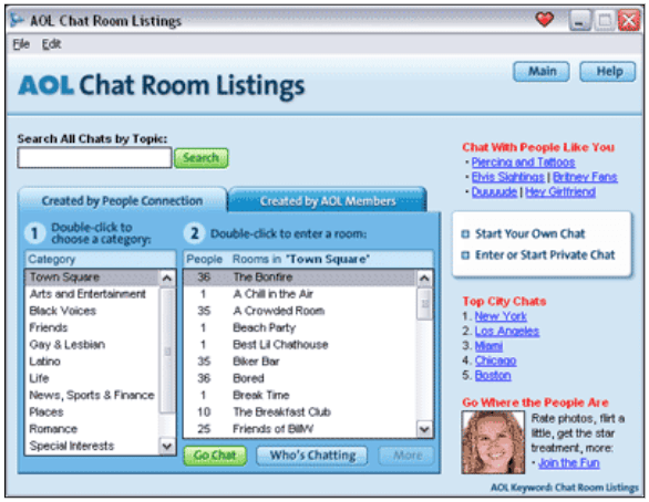 Iniciaron los noventa y para mantenernos vigentes, tuvimos que aprender a usar el telex, el fax, el beeper, la palm, el Blackberry, el Nextel. Con la liberación del internet, la World Wide Web, aprendimos a operar un módem tal y como veíamos en películas como «War Games» o «Weird Science«, después a utilizar sitios con información llamados buscadores, empezando por Yahoo, Altavista, Ask Jeeves, AOL, Explorer. Era el final de los pesados tomos de enciclopedias y diccionarios. También lo que era el correo electrónico a través del hotmail, yahoo, y cuantos más se pudo. Pero luego llegaron los chat rooms. Estos sitios www donde la gente ingresaba a espacios de conversaciones públicos, con frecuencia eran nombrados con el tema en común de los involucrados. Podían ser desde «Cuarentones en busca de amistad» hasta «Fetichistas de pies en busca de acción». La tecnología todavía era burda, no habían fotos, no había intercambio de archivos, solo textos para la vista de todos en el cuarto de chat que se estuviera y según la página que se tratara, en privado con algún(a) participantes del cuarto. El tema de la conexión a través de los chat rooms se hizo en extremo popular y avanzó hacia otras herramientas más instantáneas: MSN Messenger, ICQ, por ejemplo. Si querías divertirte en línea con gente de otras ciudades y países (lo cual era inaudito), más valía saber moverse en esos temas.